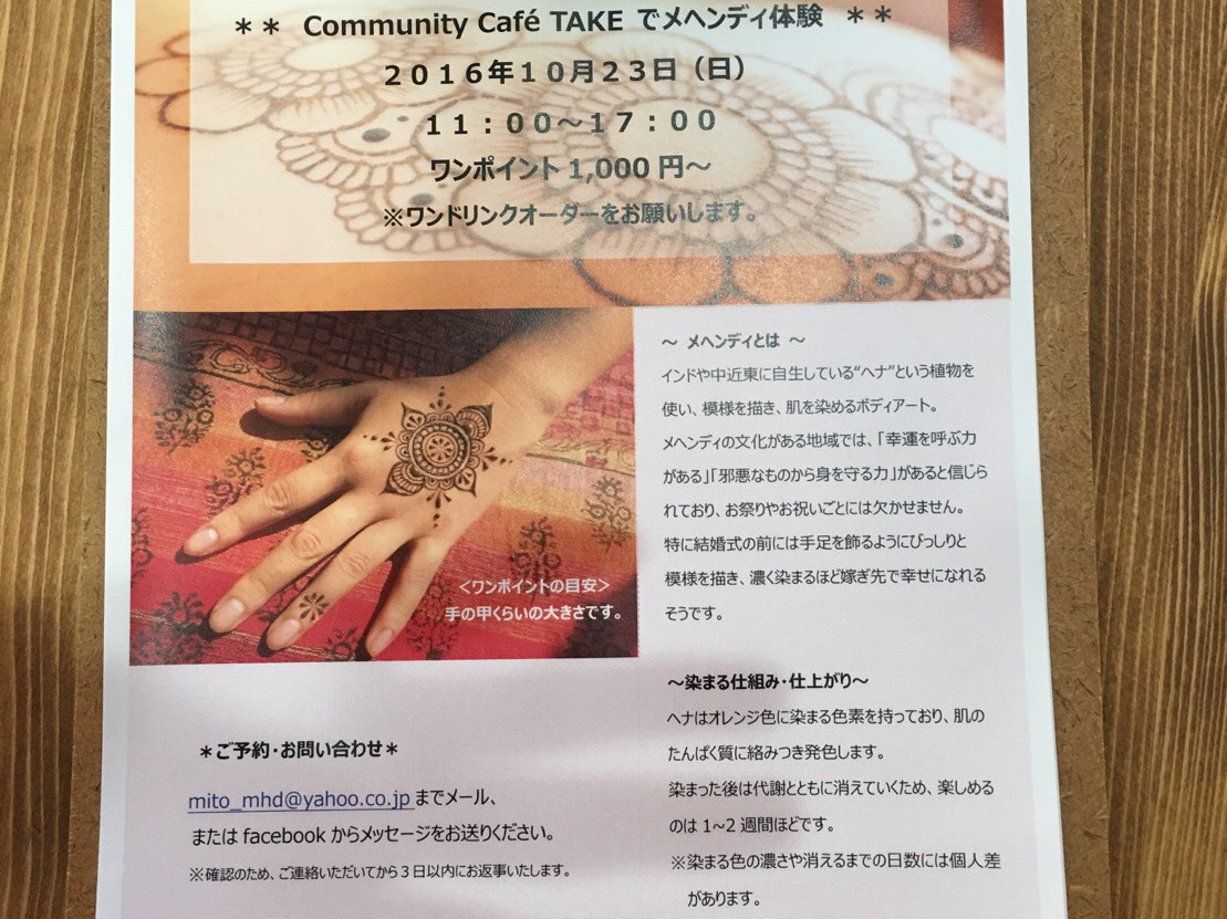 メヘンディ体験&ワークショップ (インド、中近東などに伝わるヘナを使ったボディアート)