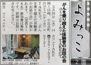 6月29日Community Cafe TAKEによる仲間づくりを応援する取り組みについてのお知らせ!